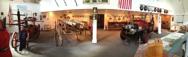 The museum houses a wide array of antique firefighting equipment, including an 1824 Hunneman Handpumper, a ladder truck of the same vintage, and a 1927 Chevrolet Fire Engine.